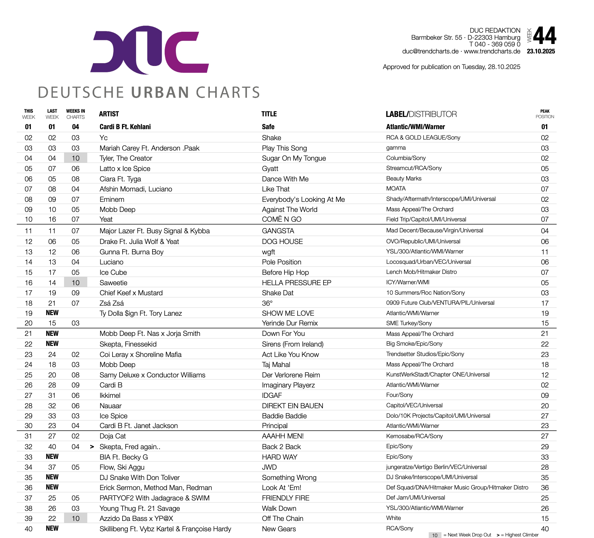 Der Blick auf die Top 3 der Deutschjen Urban Charts von Trendcharts.de