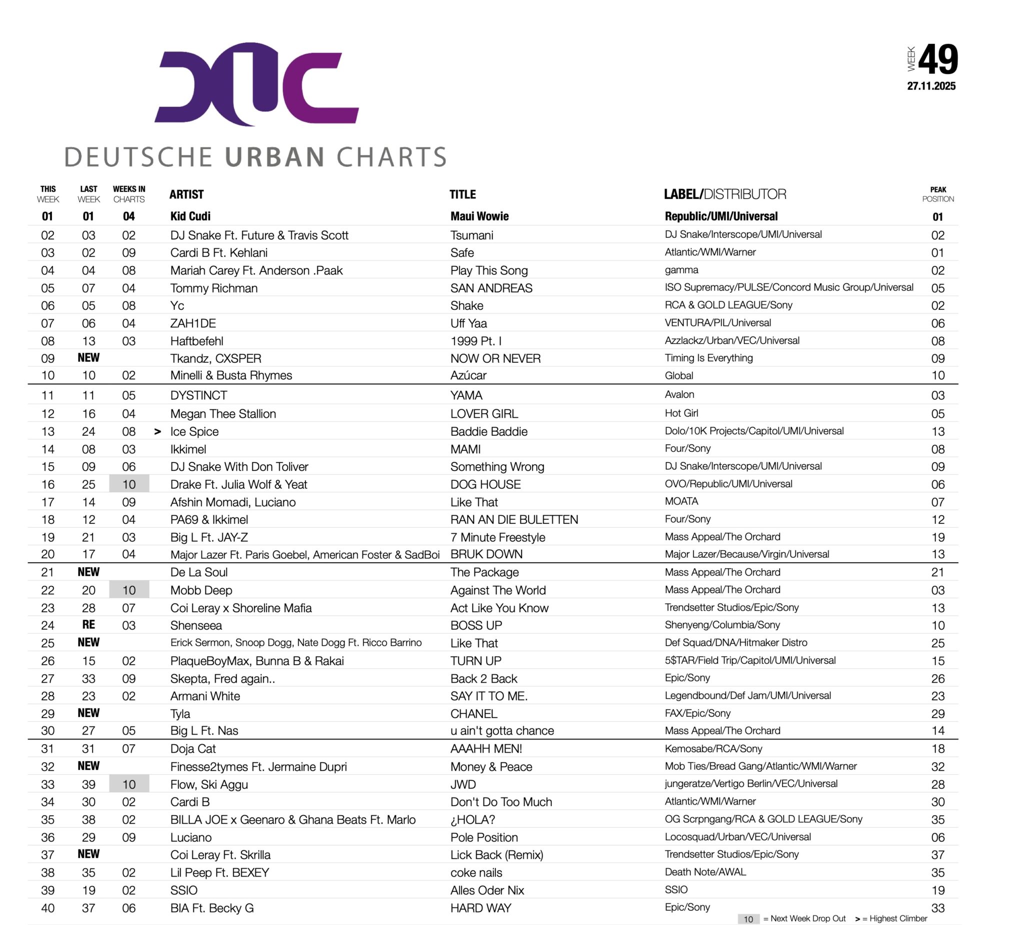Heute mit dem Blick auf die Deutschen Urban Charts von trendcharts.de