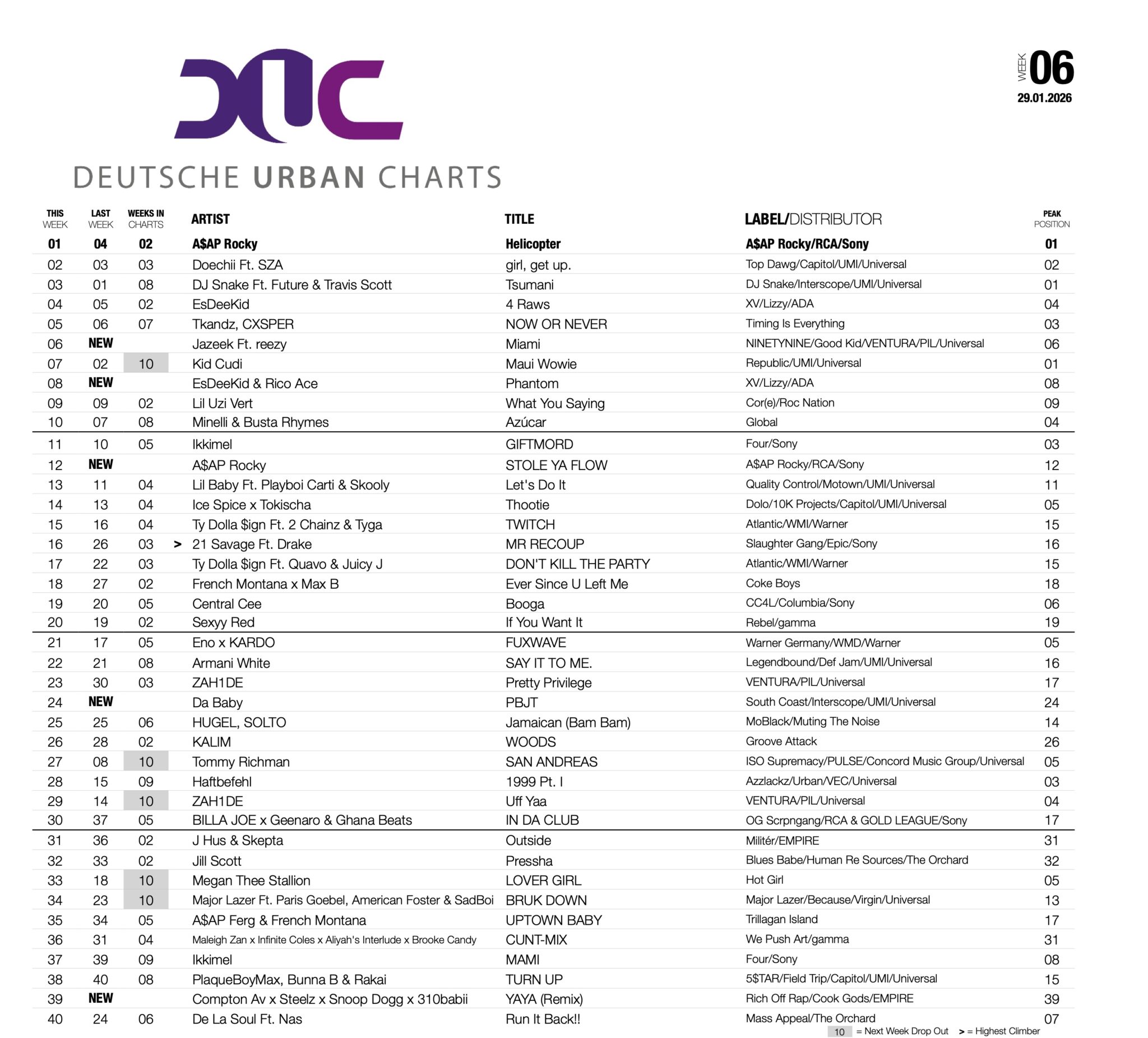 Blick auf die Deutschen Urban Charts auf trendcharts.de oder bei rap2soul
