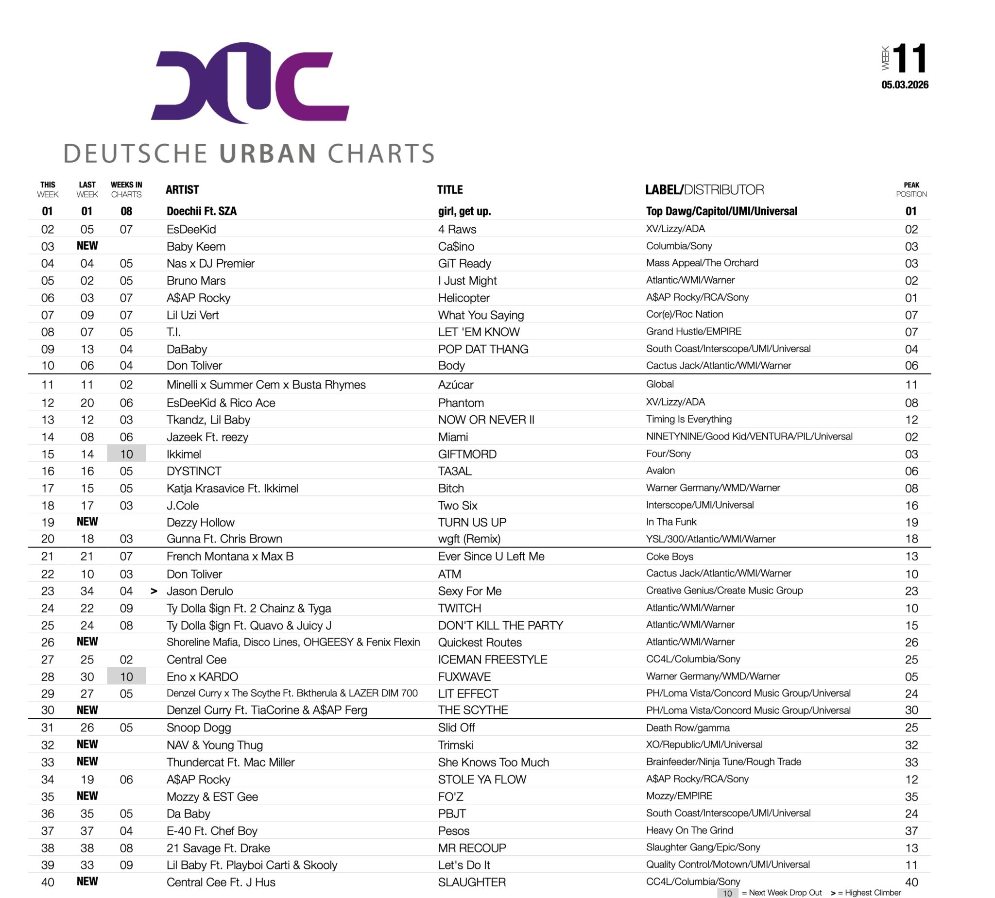 Blick auf die Deutschen Urban Charts bei trendcharts.de und rap2soul
