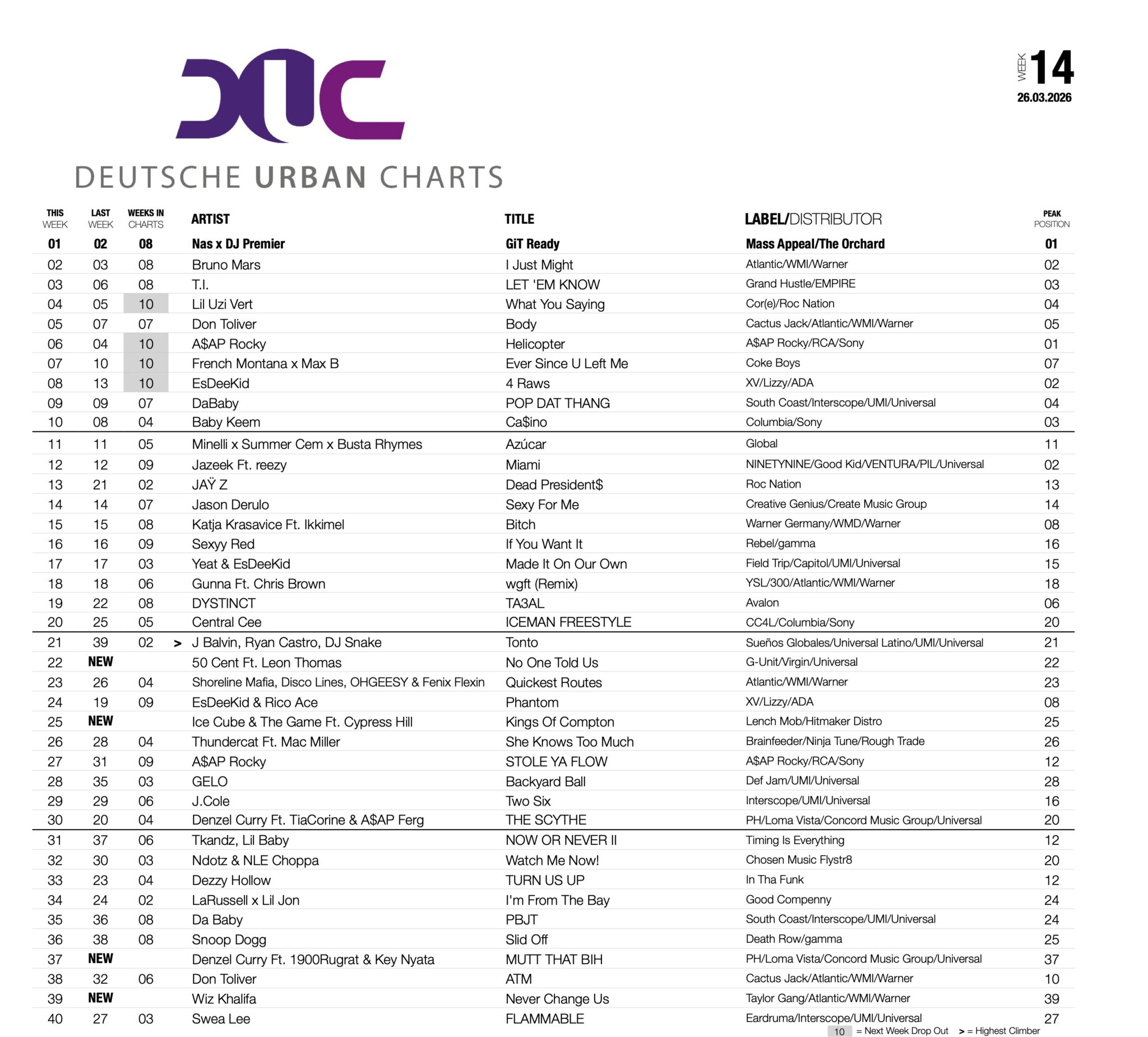 Heute der Blick auf die Deutschen Urban Charts, mehr auf trendcharts.de und rap2soul