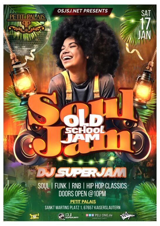 Unsere Partys entführen euch zurück in die Zeit legendärer Clubs wie Kazabra, 49er, Top Hat, P.C., Emilia Erhardt, Woodland und vielen anderen. DJ Superjam legt Songs aus den frühen 2000ern, den 90ern, den 80ern, New Jack Swing, RnB, Soul, Funk, Classic Hip Hop und sogar ein bisschen 70er-Jahre-Musik auf! Im Petit Palais erwartet euch eine super Atmosphäre! Gute Musik, Line Dance und sogar Soul Train sind bei unseren Oldschool-Partys inklusive! Also, kommt am 17. Januar ins @petit_palais_kl und zieht euch schick an!